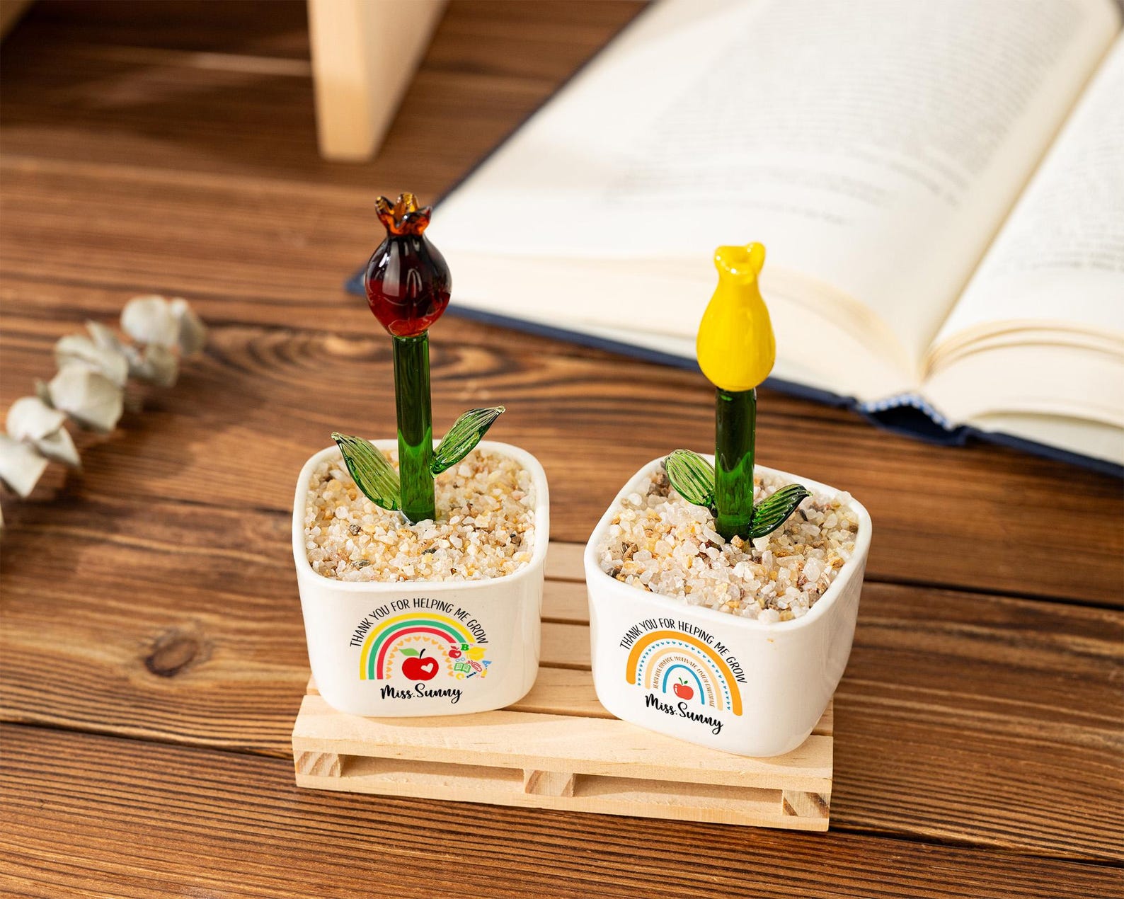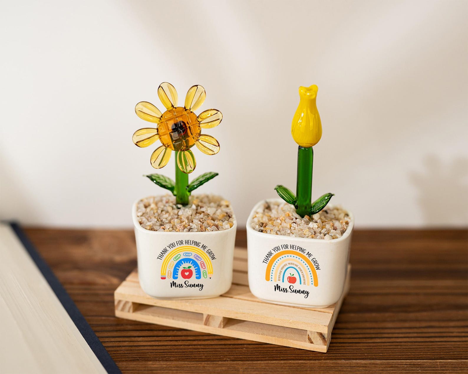 Custom Stained Glass Flower Pot, Thank You for Helping Me Grow, Teacher Appreciation Gift